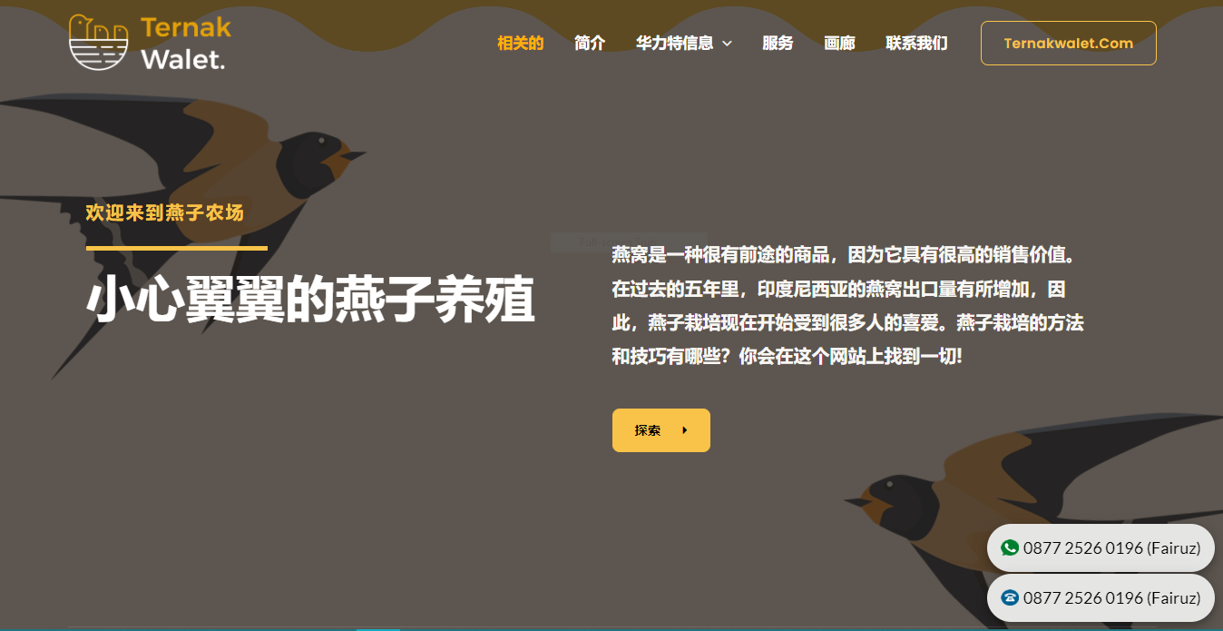 Situs Ternak Walet berbahasa Mandarin oleh PT Lentera Alam Nusantara