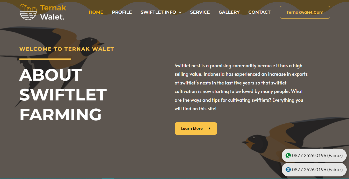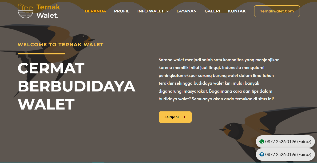 Situs Ternak Walet yang berisi tentang budidaya walet oleh PT Lentera Alam Nusantara
